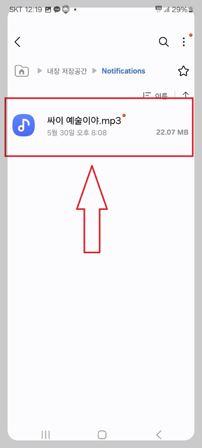 뒤로 가기를 한 번 눌러서 아래 사진에 있는 오디오파일을 눌러주세요.