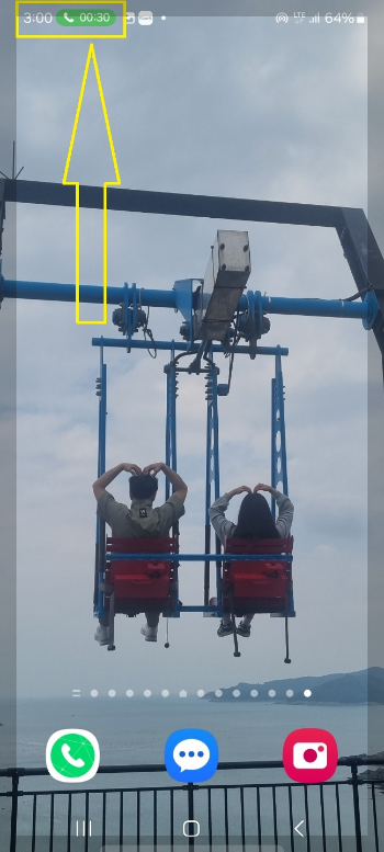 통화 종료 버튼만 누르지 않으시면 밑에 홈 버튼을 눌러서 바탕 화면으로 나와도 전화는 끊어지지 않습니다.