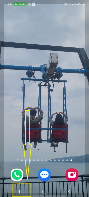 아까 통화하던 화면으로 돌아가고 싶으시다면 홈 버튼 왼쪽에 있는 줄 3개 있죠 이 버튼을 눌러주세요.